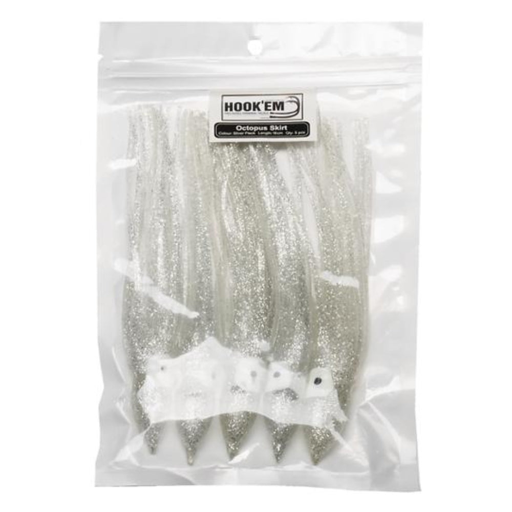Elevate your fishing game with the Hook'em Unrigged Octopus Skirt. These versatile and eye-catching skirts are perfect for enhancing your bait line or adding a pop of color to your bait for deep-dropping. Ideal for dressing mackerel, the smaller sizes can also be transformed into bonito and striped tuna lures with the simple addition of a hook and weight. Upgrade your fishing arsenal with these high-quality octopus skirts.