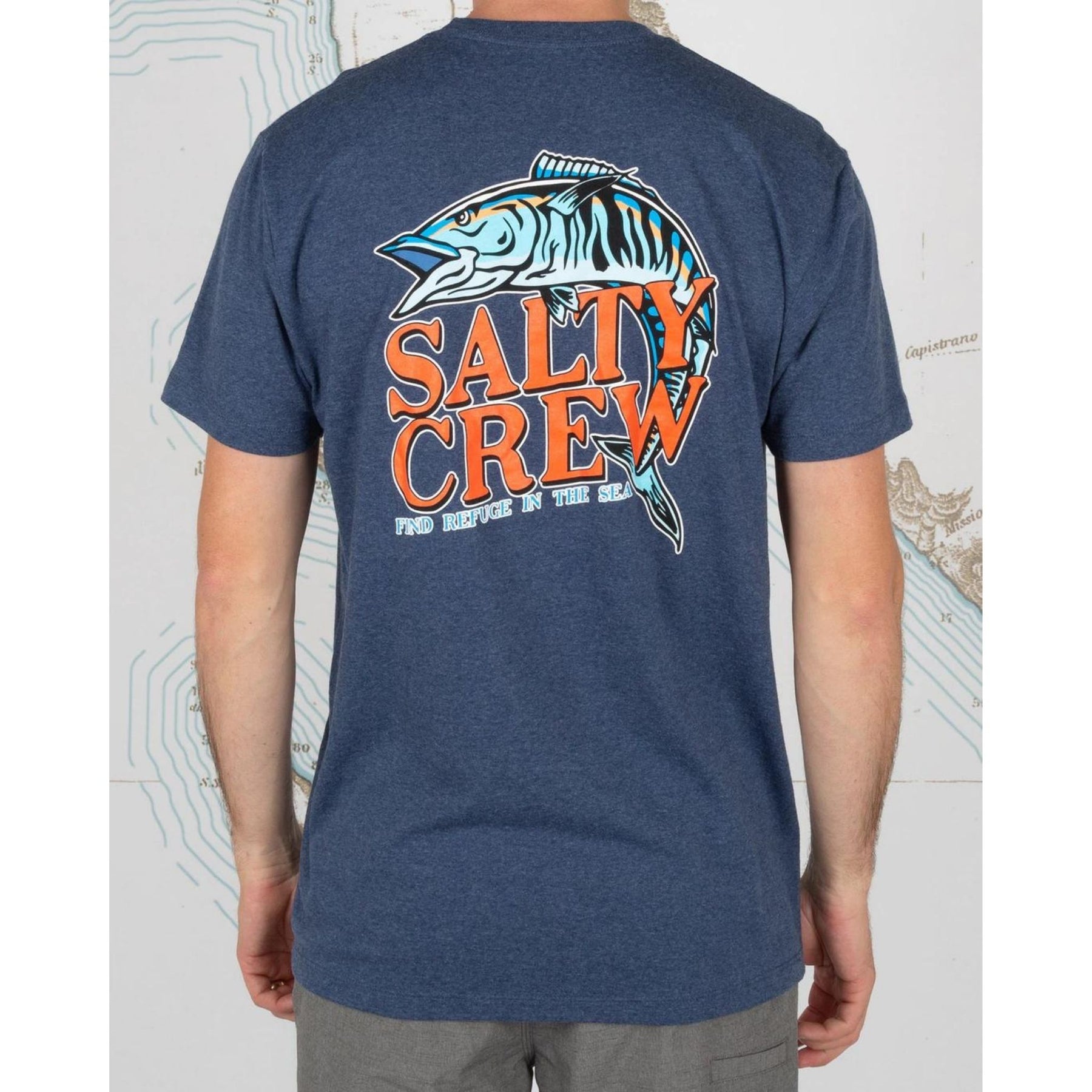 60% cotton and 40% polyester. Featuring custom Salty Crew screen print on the front and