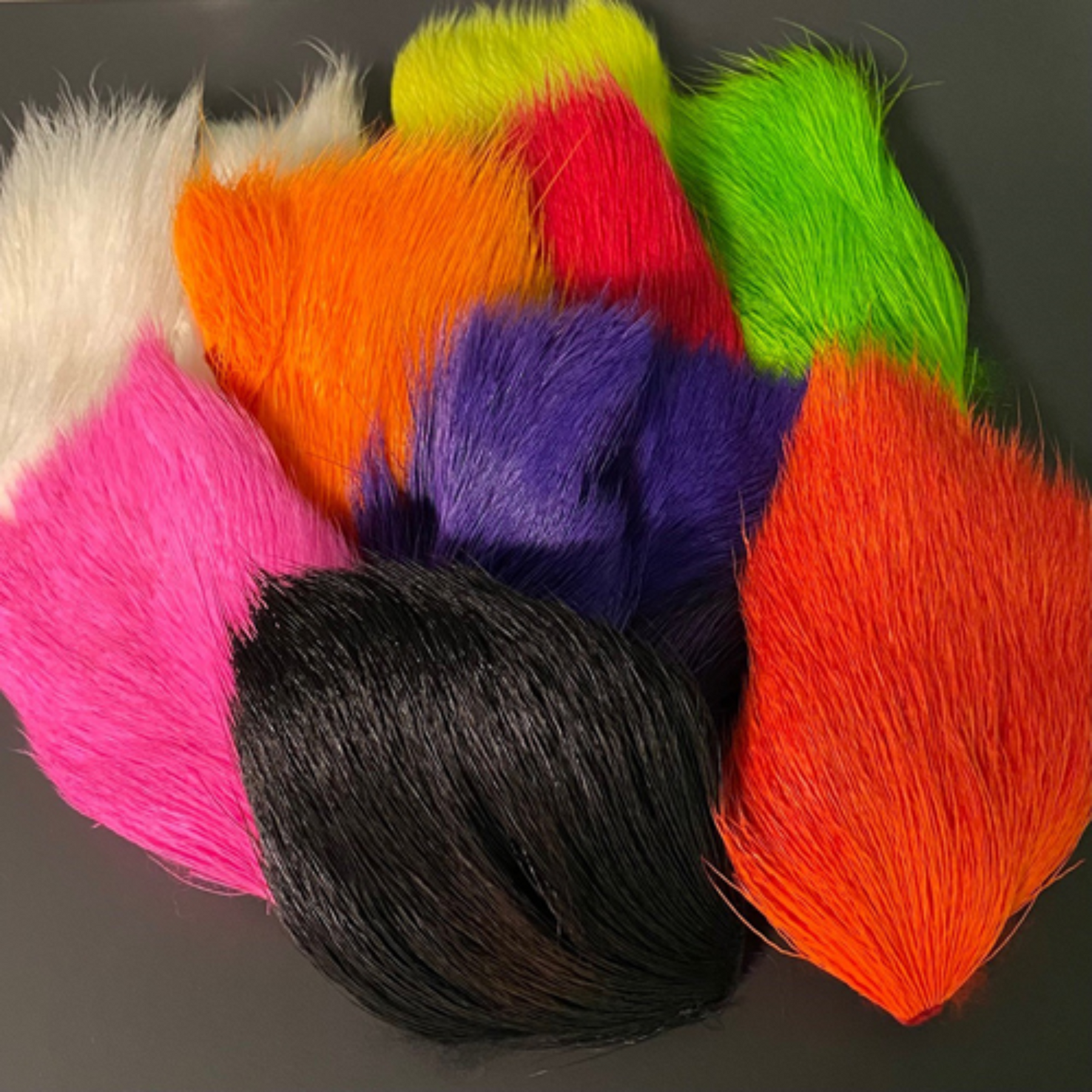 Deer belly hair, bright solid colours, great for bass bugs, not tanned