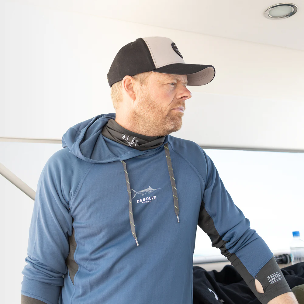 Desolve Fish Face Hoodie Navy - Stay Comfortable and Protected on Your Fishing Adventures