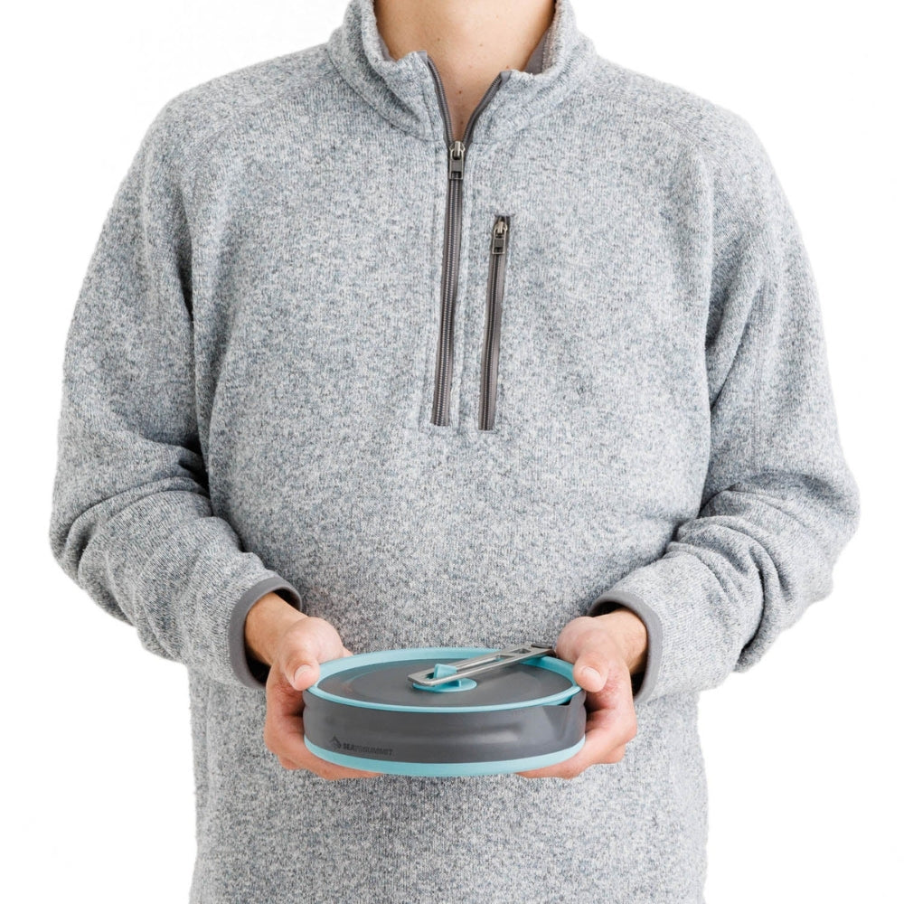 Sea to Summit introduces the Frontier Ultralight Collapsible Pouring Pot, a cutting-edge addition to their collapsible camp cookware collection. This innovative pot features EU food-grade silicone rubber sidewalls that collapse for easy packing and extend for convenient outdoor cooking. The hard-anodized aluminium alloy base ensures quick and efficient heat distribution, while the alloy lid includes a LidKeep feature for hands-free convenience. The patent-pending design allows you to clip the lid to the side of the pot, eliminating the hassle of handling a hot, clean lid. The stainless steel Click-Safe handle provides a secure grip during cooking, and can be turned around for packing to keep the lid and any nesting tableware in place.