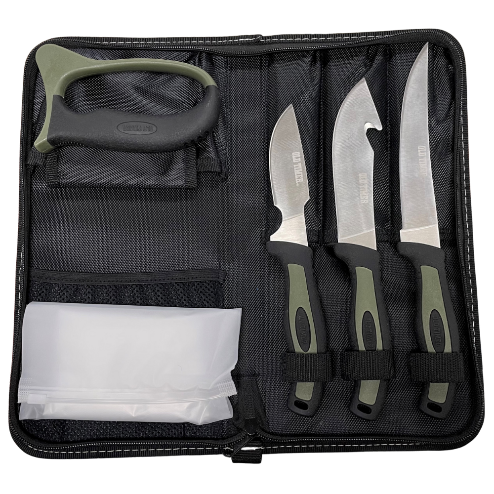 The Old Timer Lightweight Field Dressing Kit is a reliable and compact solution for hunters and outdoor enthusiasts who need dependable tools in the field. Designed to handle everything from skinning to boning, this 6-piece kit comes neatly stored in a durable nylon case for easy transport.