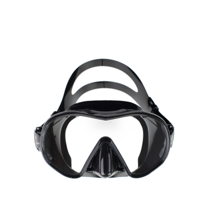 A soft anti-allergic latex skirt and wide split strap ensures superior comfort and fit, especially on long dives. The integrated frame, lens and skirt reduce the mask’s volume and bring the lens closer to the face, increasing peripheral vision. The mask’s hydrodynamic profile and pivot buckles reduce turbulence when returning to the surface after a deep dive. Push-button buckles allow easy, quick strap adjustment with just 1 hand, even while diving with gloves on.